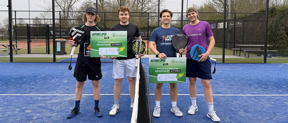 Een absolute blikvanger dit jaar was de introductie van het padel P100-toernooi – een officiële KNLTB-categorie voor spelers uit de nationale top. Met punten voor de ranglijst én aantrekkelijk prijzengeld stond er flink wat op het spel. Het publiek werd getrakteerd op padel van hoog niveau, met spectaculaire rally’s en indrukwekkende punten. Uiteindelijk gingen Quinten van Leeuwen en Yannick Verwater (nummer 15 van Nederland) er met de winst vandoor, na een mooie strijd met Max(imaal) Verhagen en Tijn Pastor, die speciaal vanuit Alkmaar en Purmerend afreisden.