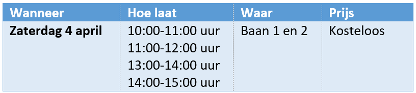 Je kunt je kosteloos inschrijven voor een clinic op de volgende tijden: