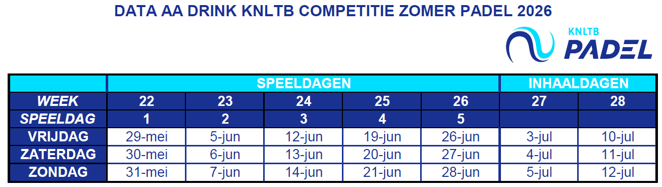 de zomercompetitie padel (inschrijven tot uiterlijk 10 april 2026)